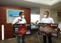 Direktur Layanan dan Niaga Garuda Indonesia Ade R Susardi dan Direktur Layanan & Jaringan BNI Ronny Venir dalam pembukaan program Garuda Indonesia Online Travel Fair (GOTF) 2022, Kamis (31/3/2022).
