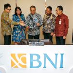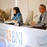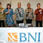 (Ki-ka) Direktur IT dan Operasi BNI Y.B. Hariantono, Direktur Keuangan BNI Novita Widya Anggraini, Direktur Utama BNI Royke Tumilaar, Direktur Bisnis UMKM BNI, Muhammad Iqbal, dan Direktur Manajemen Risiko BNI David Pirzada dalam Public Expose Kuartal I 2022 BNI, Selasa (26/4/2022). Percetakan laba bersih pada kuartal pertama BNI tahun ini mencapai Rp3,96 triliun, tumbuh 63,2% secara tahunan atau year-on-year (yoy).
