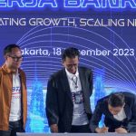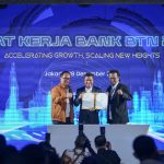 Direktur Utama Bank BTN Nixon LP Napitupulu dan Komisaris Utama Bank BTN Chandra M Hamzah disaksikan Wakil Menteri BUMN Kartika Wirjoatmodjo memperlihatkan Naskah KPI Korporat dalam acara Rapat Kerja Bank BTN 2024 di Jakarta, Senin (18/12). Dalam Raker Bank BTN 2024 ditetapkan 8 implementasi strategis yang akan diterapkan perseroan tahun 2024 antara lain: Penguatan Manajemen Risiko pada Bisnis Kredit, Akuisisi Ekosistem Bisnis, Transformasi Kantor Cabang Pembantu, Meningkatkan CASA, Akselerasi pengembangan dan akuisisi digital banking, sales channel ekspansi KPR, peningkatan bisnis beyond mortgage dan memperkuat penerapan nilai AKHALAK.