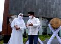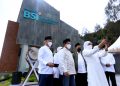 Direktur Utama Bank Syariah Indonesia Hery Gunardi (tengah) bersama Gubernur Jawa Timur Khofifah Indar Parawansa (kiri) ditemani Plt. Kepala Balai Besar Taman Nasional Bromo Tengger Semeru (BB-TNBTS) Novita Kusuma Wardani (kanan) saat meresmikan Masjid BSI Penanjakan, Jumat (22/7)