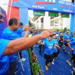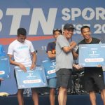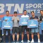 Direktur Consumer PT Bank Tabungan Negara (Persero) Tbk. Hirwandi Gafar (kanan), bersama Direktur Human Capital, Compliance, & Legal Bank BTN Eko Waluyo (kedua kanan), dan SEVP Human Capital Bank BTN Alex Sofyan Noor menyapa para peserta BTN Sports Fest 2022 di Stadion Aquatic, Gelora Bung Karno, Jakarta, Minggu (11/12). Ajang BTN Sports Fest 2022 merupakan lomba olahraga yang digelar Bank BTN dalam rangka Hari Ulang Tahun ke-46 Kredit Pemilikan Rumah (KPR). Acara tersebut sukses menghimpun ribuan peserta dalam berbagai cabang olahraga mulai dari lari, aquathlon, aqua bike, berenang, dan lomba lari untuk anak. Adapun, hingga kini, sebagai pionir penyalur KPR sejak 10 Desember 1976, Bank BTN telah menyalurkan kredit tersebut senilai hampir Rp400 triliun untuk lebih dari 5 juta masyarakat Indonesia.