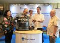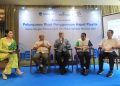 Direktorat Pengelolaan Sampah, Kementerian Lingkungan Hidup dan Kehutanan (KLHK), Ujang Solihin Sidik (kanan), Kepala Balai Bahan Jalan Kementerian Pekerjaan Umum (PU), Yohanes Ronny (kedua kanan), Circular Economy & Partnership Manager Chandra Asri Group, Nicko Setyabudi (kedua kiri), Head of Corporate Communications Chandra Asri Group, Chrysanthi Tarigan (kiri), Koordinator Program Lingkungan Hidup Yayasan Bakti Barito (YBB), Yoris Sindhu Sunarjan (tengah) berfoto bersama usai acara diskusi media Peluncuran Riset Penggunaan Aspal Plastik dalam rangka Hari Peduli Sampah Nasional (HPSN) 2025 di Jakarta, Selasa, 25 Februari 2025.