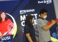 Direktur Distribution & Funding Bank BTN Jasmin bersama legenda bulutangkis Indonesia Alan Budikusuma dan Susi Susanti berbincang dengan pemilik toko di Pasar Metro Tanah Abang dalam acara Roadshow Tabungan Bisnis di Jakarta, Senin (18/7). Bank BTN akan melakukan Roadshow Tabungan Bisnis diberbagai daerah antara lain Jakarta, Pontianak, Bandung, Surabaya, Semarang dan Medan. Dengan Tabungan Bisnis ini diharapkan mampu meningkatkan Dana Pihak Ketiga ritel perseroan melalui pengembangan Current Account and Saving Account berbasis transaksional.