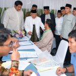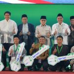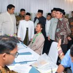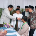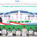Direktur Utama BTN Nixon LP Napitupulu (kanan) bersama Menteri Perumahan dan Kawasan Permukiman Maruarar Sirait (kiri), dan Ketua Dewan Pertimbangan Majelis Ulama Indonesia Ma’ruf Amin (kedua kiri), dan Wakil Ketua Umum MUI Marsudi Syuhud (kedua kanan) meninjau Akad Massal KPR Subsidi berskema syariah di Asrama Haji Pondok Gede, Jakarta, Sabtu (26/7). Program hasil kolaborasi tersebut ditujukan bagi Da’i, Guru Ngaji, Aktivis Islam, dan Pegawai Ormas Islam di lingkungan MUI sebagai bagian dari upaya menghadirkan hunian yang layak, terjangkau, dan sesuai prinsip syariah. Adapun pada tahun ini, Pemerintahan Presiden Prabowo Subianto melalui Kementerian PKP mengalokasikan penyaluran 5.000 unit rumah subsidi bagi pekerja di lingkungan MUI melalui pembiayaan pemilikan rumah BTN Syariah.