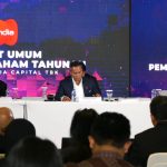 Dari kiri ke kanan. RM Harlin E Rahardjo Direktur MDIA, Arief Yahya Komisaris MDIA, CF. Carmelita Hardikusumo Komisaris Independen MDIA, Anindra Ardiansyah Bakrie Komisaris Utama MDIA, Anindya Novyan Bakrie Ex Komisaris Utama MDIA, Ahmad Rahadian Widarmana Direktur Utama MDIA, Yufli Gunawan Direktur MDIA, Raden Mas Djoko Setiotomo Komisaris Independen MDIA berbincang usai RUPS Tahunan PT Intermedia Capital Tbk (MDIA), Rabu ,(3/9/2025).