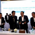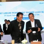 Direktur Utama Bank BTN Haru Koesmahargyo bersama Wakil Direktur Utama Bank BTN Nixon LP Napitulu, Komisaris Utama Bank BTN Chandra Hamzah dan Wakil Komisaris Utama Bank BTN Iqbal Latanro berbincang di sela Rapat Umum Pemegang Saham Luar Biasa (RUPSB) Bank BTN di Jakarta, Selasa (18/10). RUPSLB Bank BTN menyetujui penerbitan saham baru melalui skema Hak Memesan Efek Terlebih Dahulu (HMETD) atau rights issue sebanyak-banyaknya 4,6 miliar saham Seri B dengan nilai nominal Rp500 per saham. Bank BTN akan menggunakan dana hasil rights issue untuk meningkatkan kapasitas perseroan dalam penyaluran kredit untuk mendukung Program Perumahan Nasional, khususnya Program Pemerintah Sejuta Rumah.