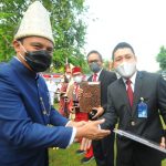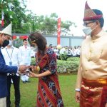 Wakil Direktur Utama Bank BTN Nixon LP Napitupulu menjadi inspektur Upacara Pengibaran Bendera dalam rangka HUT Kemerdekaan RI ke-77 di Kantor Pusat Bank BTN, Jakarta, Rabu (17/8). Bersama dengan anggota direksi dan komisaris BTN kompak mengenakan baju daerah. Pada hari yang sama upacara bendera juga dilakukan di seluruh Kantor Cabang Bank BTN di seluruh Indonesia. Dalam kesempatan tersebut Nixon memberikan penghargaan karya satya bhakti dan karya purna bhakti kepada para pegawai sesuai masa baktinya, termasuk penghargaan purna bhakti yang diberikan kepada sejumlah pejabat BTN yang saat ini menjabat sebagai direksi perseroan maupun direksi pada BUMN lain.