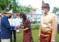 Wakil Direktur Utama Bank BTN Nixon LP Napitupulu menjadi inspektur Upacara Pengibaran Bendera dalam rangka HUT Kemerdekaan RI ke-77 di Kantor Pusat Bank BTN, Jakarta, Rabu (17/8). Bersama dengan anggota direksi dan komisaris BTN kompak mengenakan baju daerah. Pada hari yang sama upacara bendera juga dilakukan di seluruh Kantor Cabang Bank BTN di seluruh Indonesia. Dalam kesempatan tersebut Nixon memberikan penghargaan karya satya bhakti dan karya purna bhakti kepada para pegawai sesuai masa baktinya, termasuk penghargaan purna bhakti yang diberikan kepada sejumlah pejabat BTN yang saat ini menjabat sebagai direksi perseroan maupun direksi pada BUMN lain.