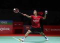 Anthony Sinisuka Ginting dalam pertandingan Semifinal Tunggal Putra Daihatsu Indonesia Masters 2022 melawan Viktor Axelsen, di Jakarta, Sabtu (11/6/2022).