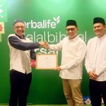 Director, Public Affairs Herbalife Indonesia, Arif Mustolih (kiri), Dewan Pengawas Syariah Nasional Majelis Ulama Indonesia-DSN-MUI, Moch Bukhori Muslim (tengah), serta Dewan Pengawas Syariah DSN-MUI, Fauzan Sugiyono berfoto bersama saat menyerahkan Sertifikasi Syariah Herbalife Indonesia di Jakarta, Kamis, 24 April 2025. Sertifikasi Syariah ini merupakan tonggak penting dalam perjalanan Herbalife Indonesia untuk menyediakan solusi nutrisi terpercaya serta memberikan jaminan bahwa seluruh operasional bisnis Herbalife di Indonesia telah sesuai dengan prinsip-prinsip Syariah.