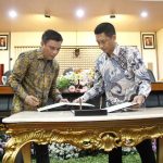 Direktur Utama PT Bank Tabungan Negara (Persero) Tbk, Nixon LP Napitupulu, dan Direktur Utama PT Danareksa (Persero), Yadi...