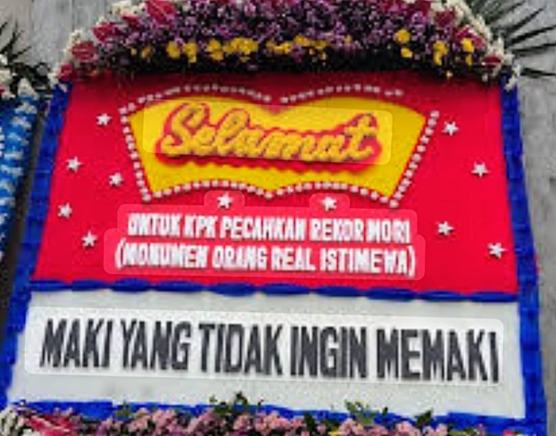 Karangan bunga dari Masyarakat Anti Korupsi Indonesia (MAKI) tersebut tampak dipajang di depan Gedung Merah Putih KPK. Meski mengandung pesan sindiran, KPK memandangnya sebagai wujud perhatian masyarakat terhadap proses hukum yang tengah berjalan.