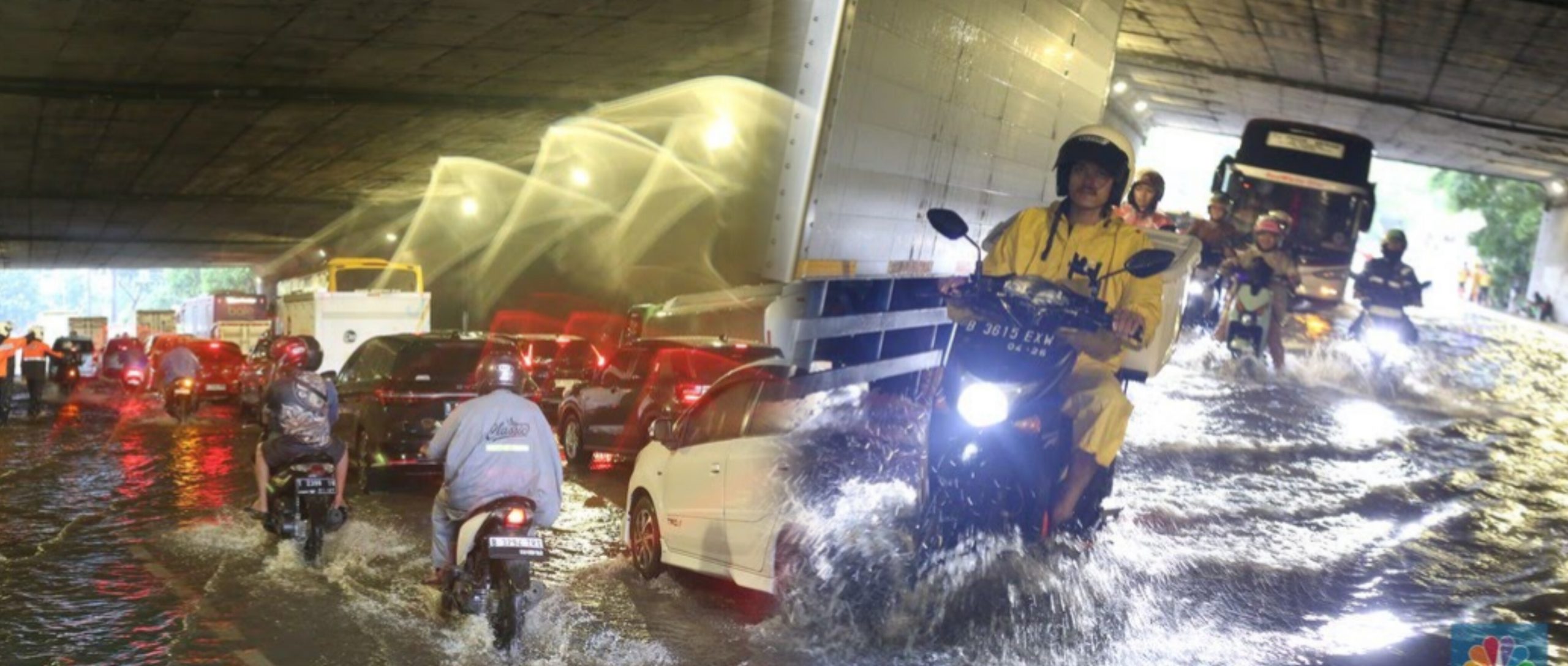 Abu (27), salah satu pengendara, mengaku nekat menerobos banjir karena sudah terlambat berangkat kerja. Namun motornya justru mati di tengah terowongan.