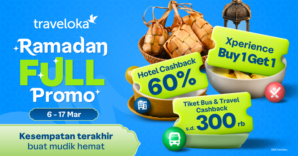Untuk membantu masyarakat mendapatkan harga yang lebih kompetitif menjelang puncak arus mudik, Traveloka menghadirkan program Ramadan FULL Promo yang berlangsung pada 6 hingga 17 Maret 2026.