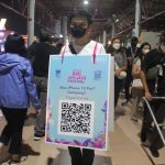 Pengunjung tengah melakukan pembayaran menggunakan QRIS melalui BNI Mobile Banking di area BNI Java Jazz Festival 2022, Jakarta, Jumat (27/5/2022).
