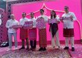 (ki-ka) Steve Saerang, Head of Corporate Communications IOH Saurabh Tamrakar, SVP-Head of Mass Market Growth IOH Vivek Mehendiratta, Chief Marketing Officer IOH Ritesh Kumar Singh, Director & CCO IOH Galuh Neftita, SVP-Head of National TRI Brand dan M Kharisma Putra Tamara, VP-Head of Growth Hack IOH pada konferensi pers Mudahnya Kebaikan #SedekahKuota.