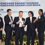 Presiden Direktur WOM Finance Djaja Suryanto Sutandar (tengah) berbincang dengan (dari kiri) Direktur Cincin Lisa Hadi, Wakil Presiden Direktur Njauw Vido Onadi, Presiden Komisaris Sarastri Baskoro dan Komisaris Thilagavaty Nadason berbincang usai Rapat Pemegang Saham (RUPS) Tahunan dan RUPS Luar Biasa di Jakarta, Selasa (25/3/2025). Perseroan berhasil mencatatkan kinerja yang positif sepanjang tahun 2024 dalam berbagai aspek. Total aset Desember 2024 tercatat sebesar Rp 6,95 triliun, meningkat sebesar 4,68% dibanding Desember 2023 sebesar Rp 6,64 triliun.